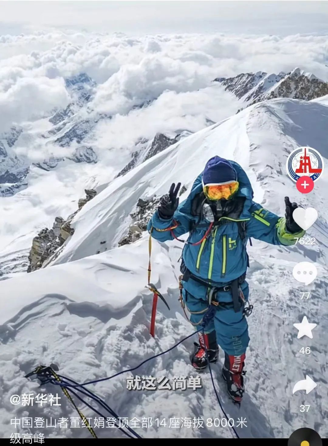 记者从西藏自治区登山协会了解到,中国登山者董红娟(又名静雪)于4月26日17时42分登顶海拔8027米的希夏邦马峰,并于北京时间4月30日夜间获得国际登山登顶认证网站8000ers.com认证,成为全球首位登顶全部14座海拔8000米级高峰的女性。