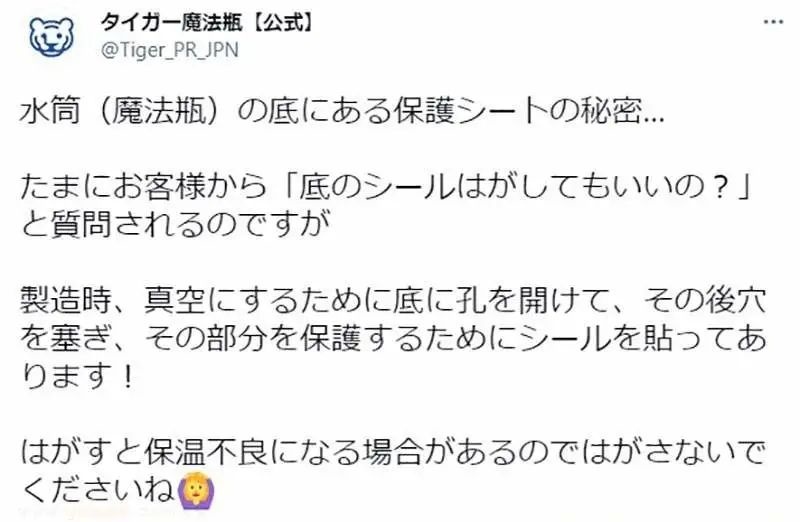 最近,日本一位保温杯制造业业内人士在网上发文称:撕掉保温杯底部贴纸,保温效果就可能会消失。