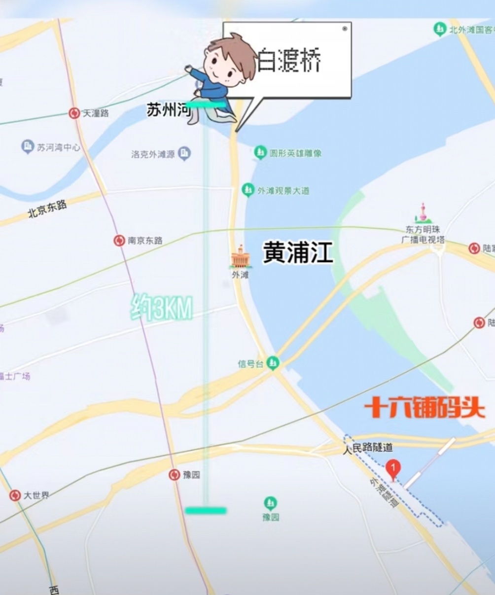 从走失地点到外白渡桥,小男孩走了将近整整3公里,所幸他没有跑得更远……