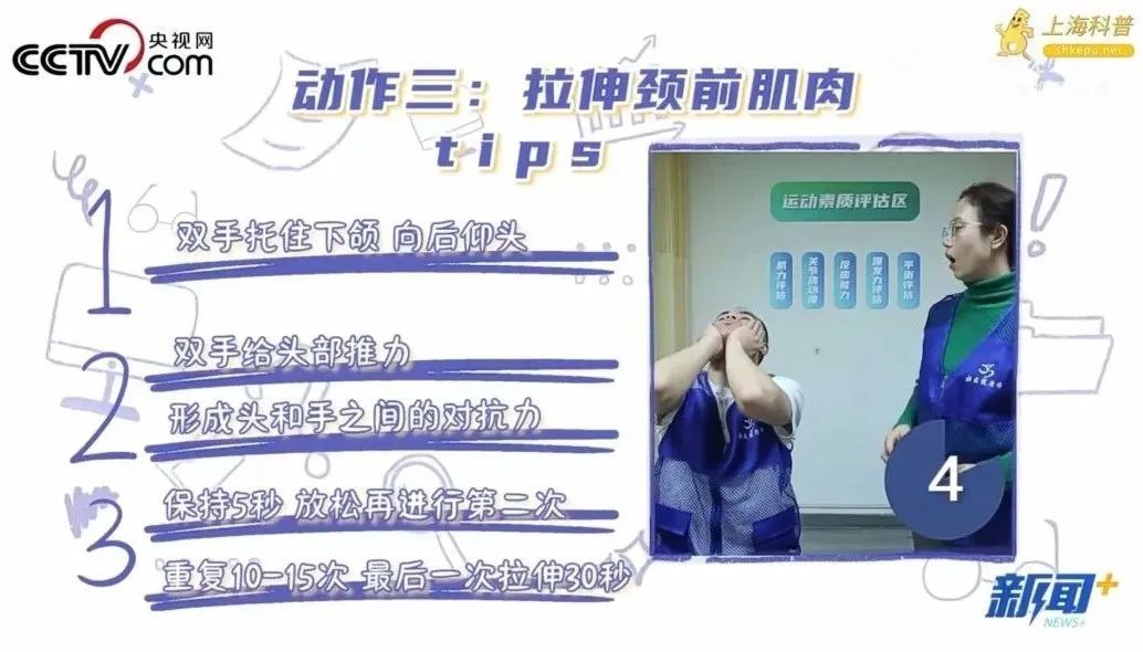 动作三:拉伸颈前肌肉