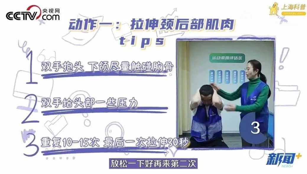 动作一:拉伸颈后部肌肉