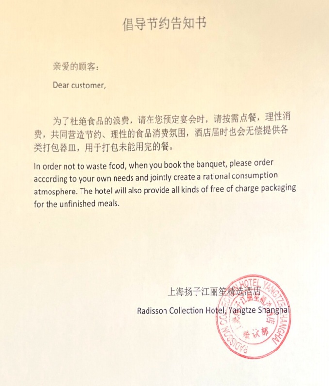 目前,长宁区酒店、宾馆等餐饮企业在和消费者签订宴席及订餐合同时,增加了“制止餐饮浪费”条款,并在菜单定制上给予消费者建议,合理搭配菜品、主食,同时提升供给质量,合理确定数量和分量,按需点餐,杜绝集体餐饮的浪费。