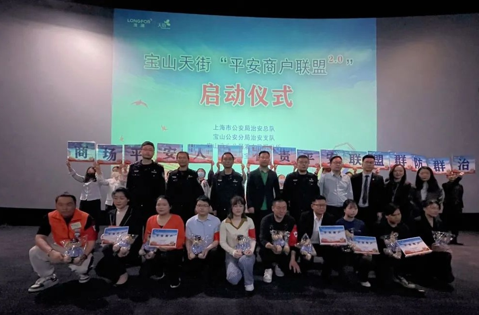 近日,在市局治安总队指导下,宝山公安分局治安支队会同潘广路派出所,在龙湖天街召开了龙湖天街“平安商户联盟”2.0启动仪式。