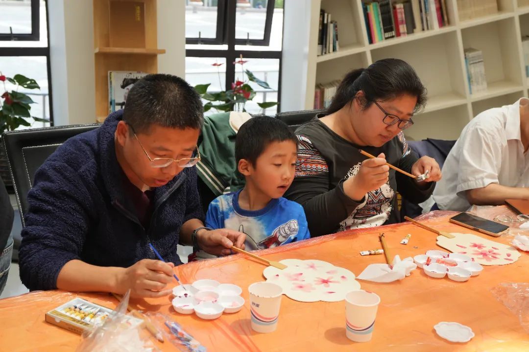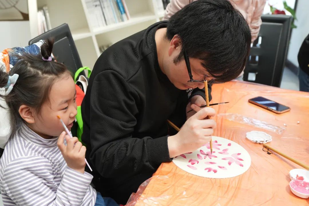 此次活动包括手作樱花扇和手绘玻璃灯,参展艺术家带领参与者进行展陈艺术品的简化版制作,通过创作拥有一份独属于自己的“私人定制艺术品”。在现场,记者看到有许多家长带着孩子参与活动,通过绘画的方式增加亲子互动交流,也让孩子们有机会近距离感受中国传统水墨画的魅力。