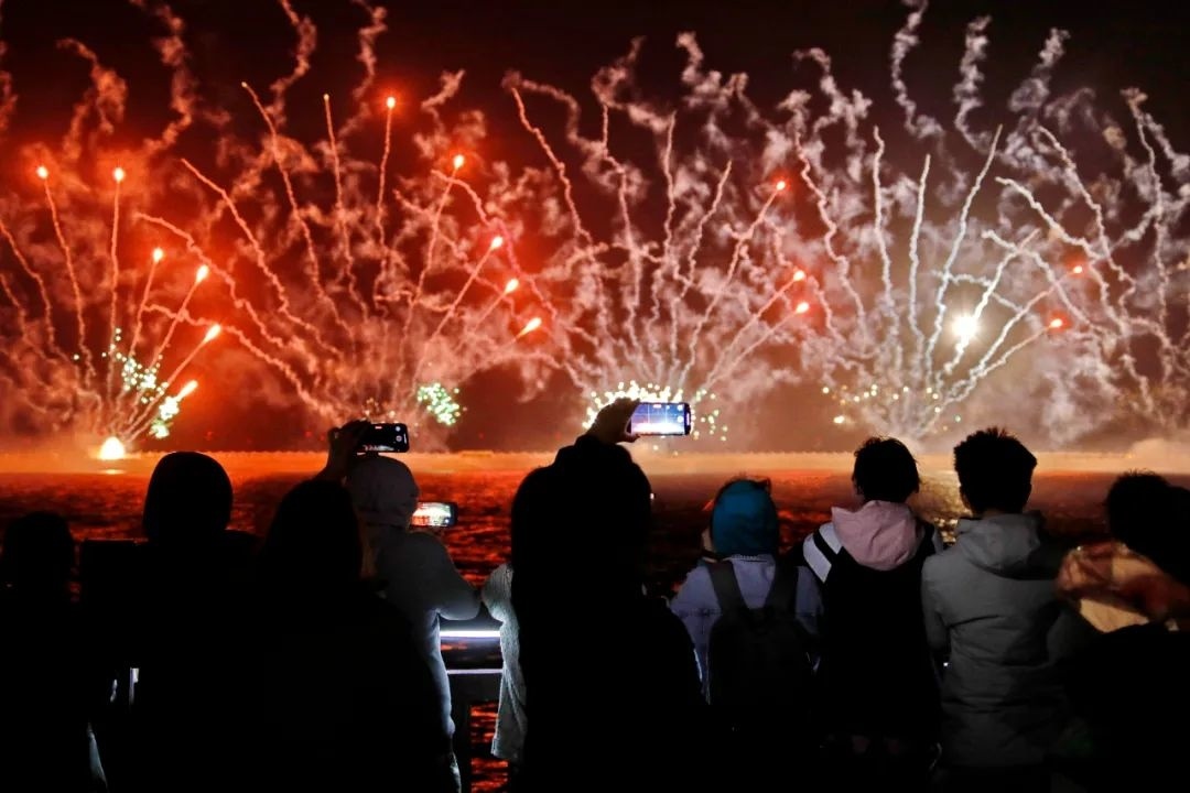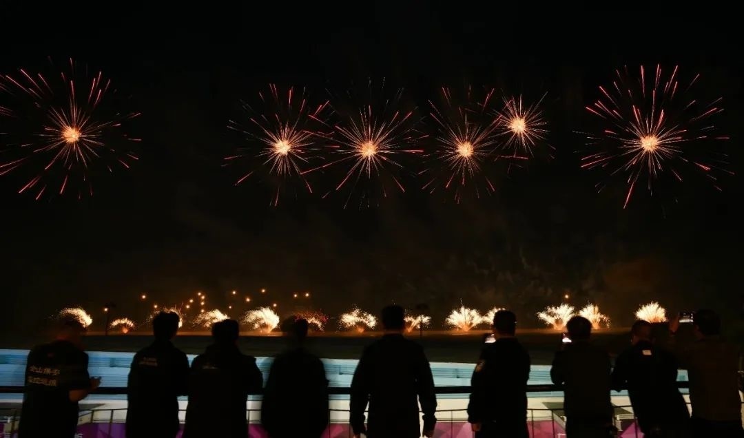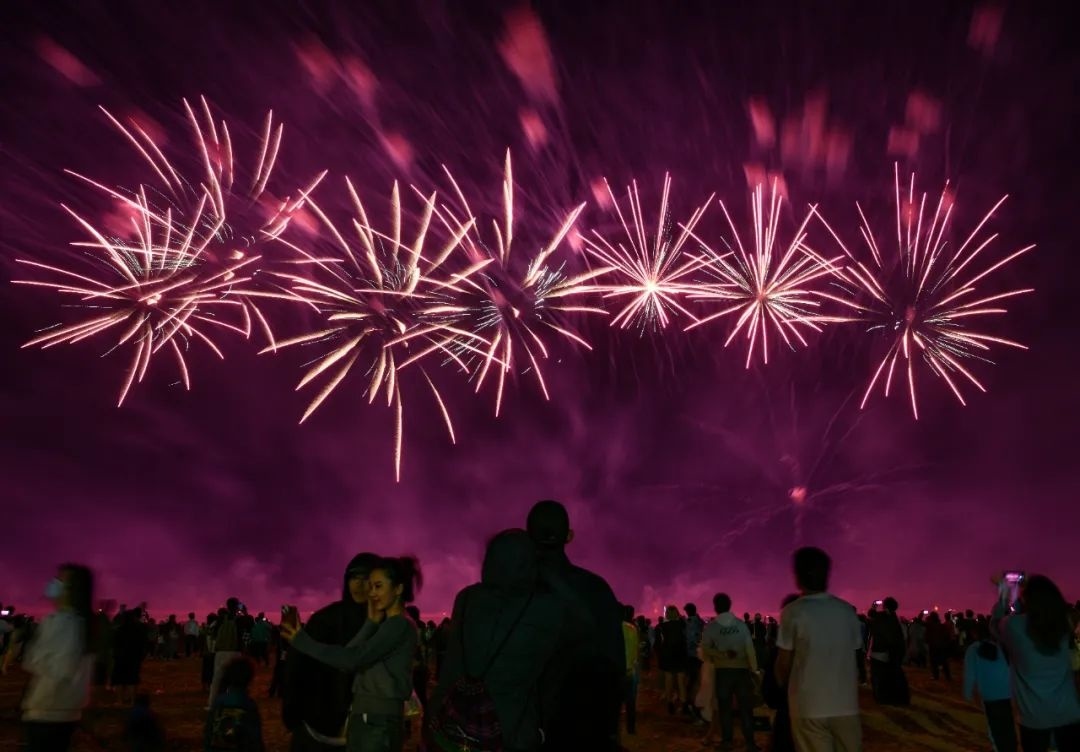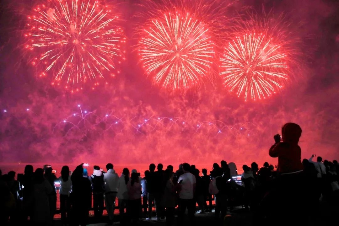 我是第一次看这样的烟花秀,过年的时候自己也放烟花,但今天看到的烟花太炫酷了,让人感觉很震撼。