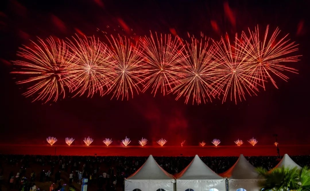 而希腊专题的烟花秀则与之不同。浪漫、洒脱、自由,随着音乐与烟花的叠加,市民仿佛置身于希腊海岛的街头,身临其境感受来自希腊的自然风光和民族风情,伴随音着乐和焰火的节奏,感受这以快乐、享受为主基调的焰火表演。