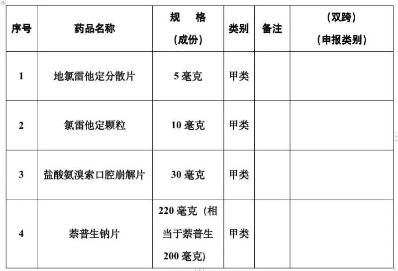 国家药监局近日发布公告:地氯雷他定分散片等4种处方药转换为非处方药。