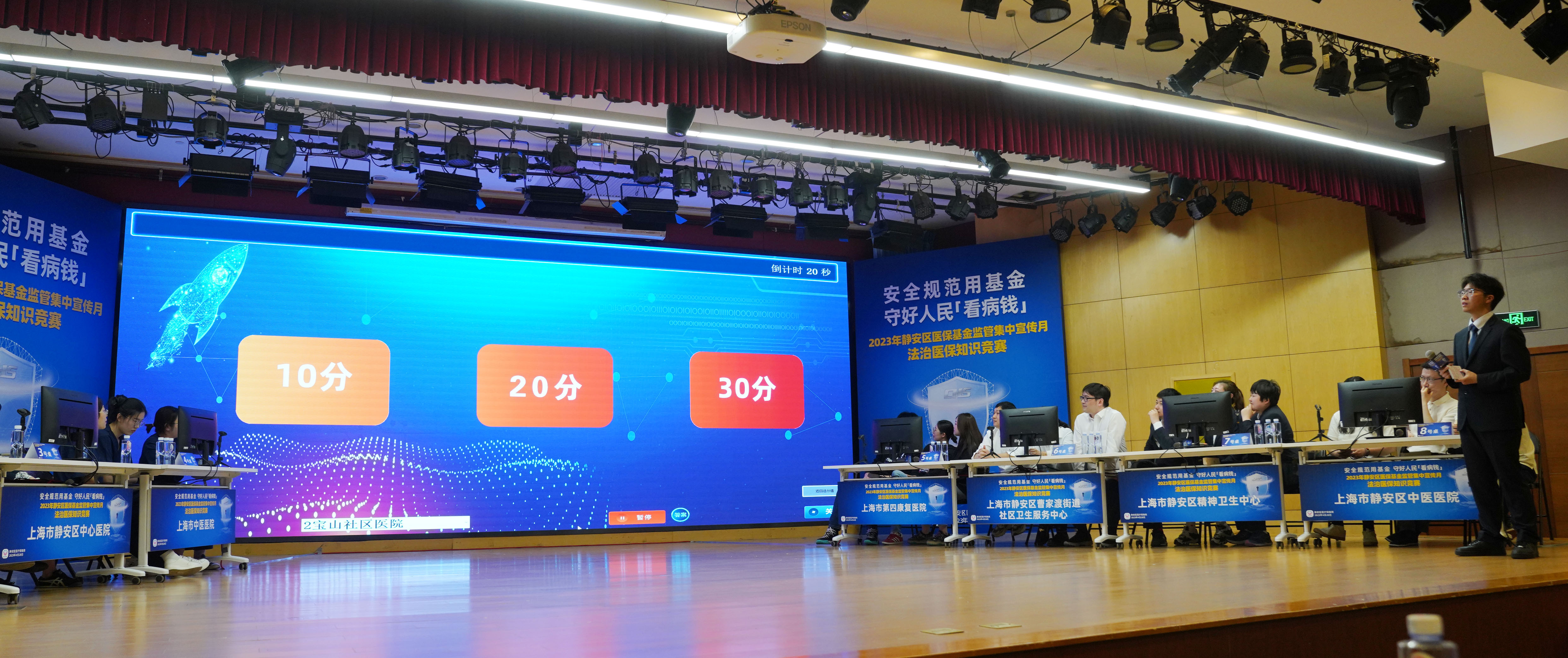 为深入开展医保基金监管宣传月主题活动,提高医保政策普及率,提升定点机构政策应用能力,强化法治医保宣传能级,营造辖区内人人守护医保基金安全,争做医保基金“守门人”良好氛围,日前,“安全规范用基金,守好人民看病钱”2023年静安区医保基金监管集中宣传月法治医保知识竞赛决赛拉开序幕。