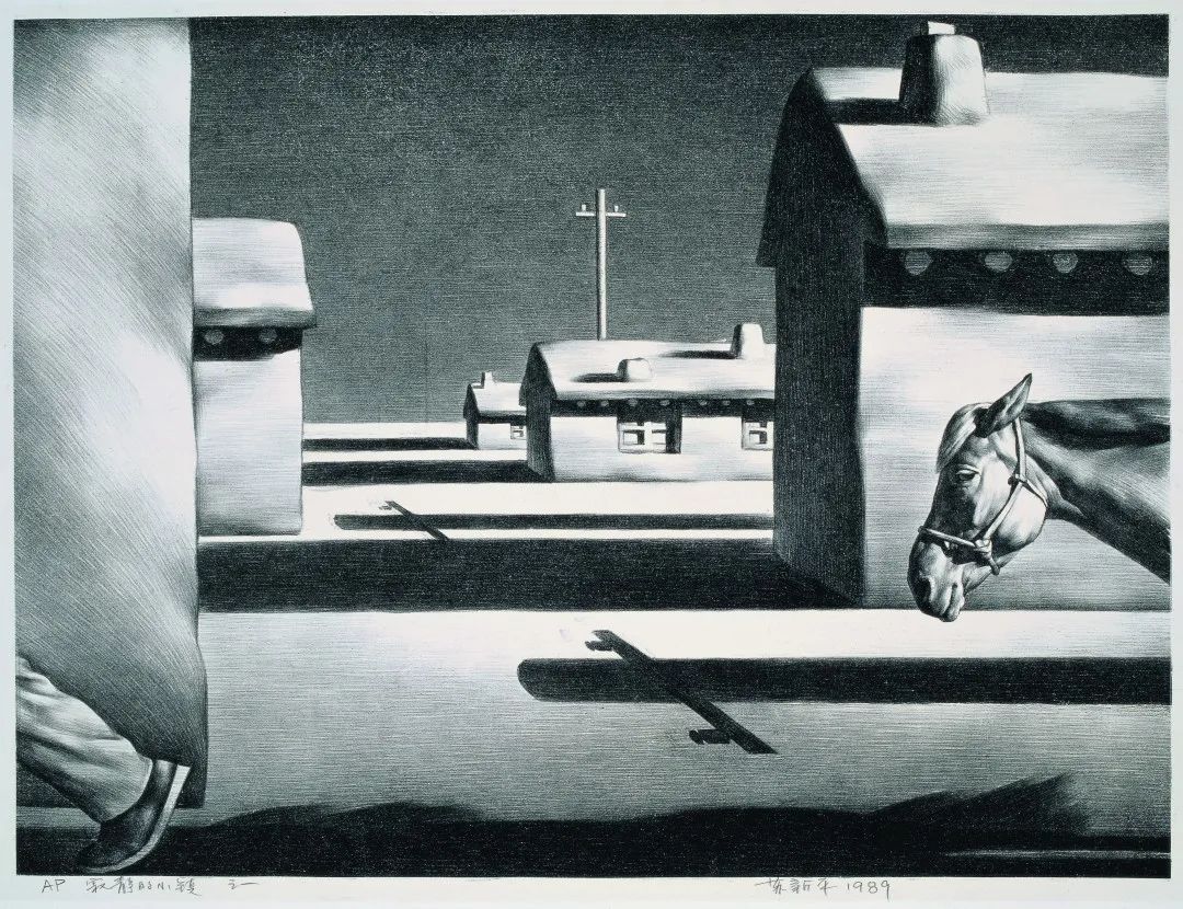 苏新平,《寂静的小镇之一》,石版单色,1989,中央美术学院美术馆藏