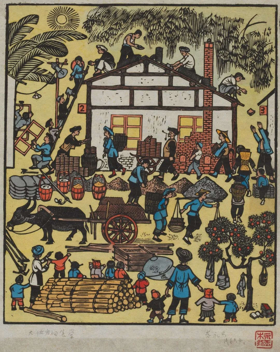 黄永玉,《大伙的食堂》,木版套色,1960,中央美术学院美术馆藏