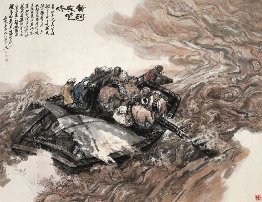 杨力舟、王迎春,《三联幅之黄河在咆哮》,纸本设色,1980,中央美术学院美术馆藏