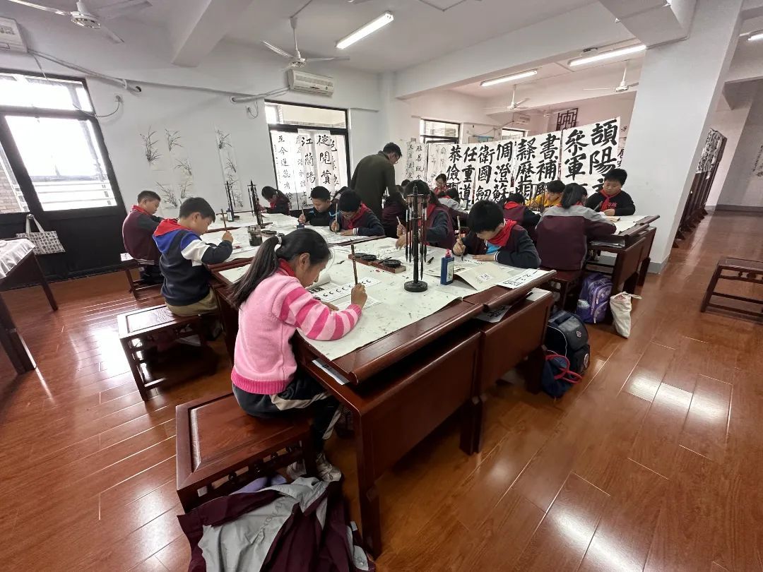 新桥学校近日完成评审工作,成功创建上海市书法实验学校。目前,新桥学校一年级至九年级均设写字课,同时在课后服务中开设书法兴趣课,并对特长生开设书法拓展课。