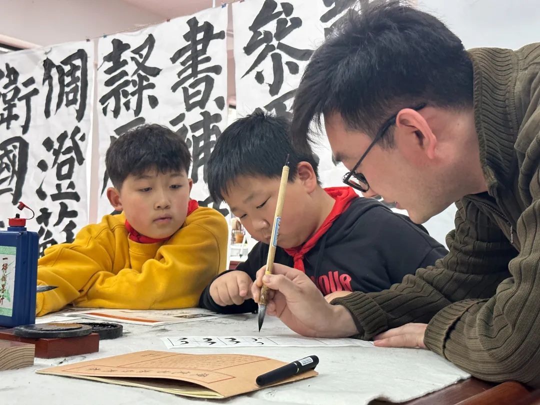 刘加顺目前带教的是四五年级的写字课及书法社团的课后辅导班,他介绍,在教书法的过程中,最重要的是鼓励学生发现书法的美,激发他们的审美情趣。“只有热爱才是最好的老师。”刘加顺说。四年级学生龙思溱学习书法已有3年,她说自己很喜欢上刘加顺的课:“老师会讲汉字的演变故事,也会将一个字的不同字体写出来,告诉我们有哪些变化。”