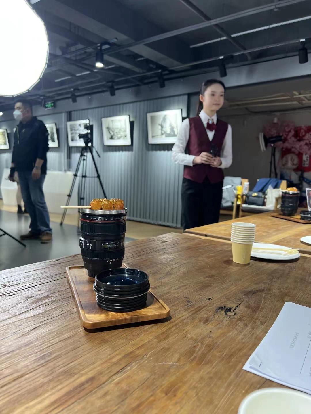 自2021年开始,在区就业促进中心指导下,学校与“星光色谷”公共创业实训基地联合主办了星光“摄影+”创意下午茶大赛,用创新创业为老字号企业赋能。2022年举办的第二届星光“摄影+”创意下午茶大赛,以“相机里的中国”为主题,既聚焦潮流的崛起,也不忘经典的延续。决赛现场,同学们从选料口味、主题寓意,到市场定价、产品推广途径等,对精心制作的饮品点心进行完整路演,推动了新产品落地企业。此次活动还在B站上直播,吸引四千多人观看。当知晓这些卖相精致、口味新颖的咖啡和点心都是一群不到20岁的年轻人作品时,弹幕里赞叹声一片。