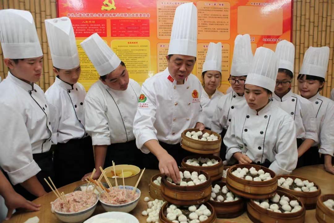 其中最引人注目、也是深受学生欢迎的,当数“小笼包非遗工作室”。它由学校与南翔古猗园小笼馆合作成立、南翔小笼馒头制作技艺第六代传人李建钢主持并亲自授课,通过非遗进校园的方式,在中餐烹饪专业学生中传承小笼包制作技艺。2021年,学校还启动了“小笼包学院”创新创业训练营,以小笼包制作技艺为核心,以海派餐饮传习为基础,联合学校各专业,围绕非遗传习、匠心传承、专业实践开展活动。