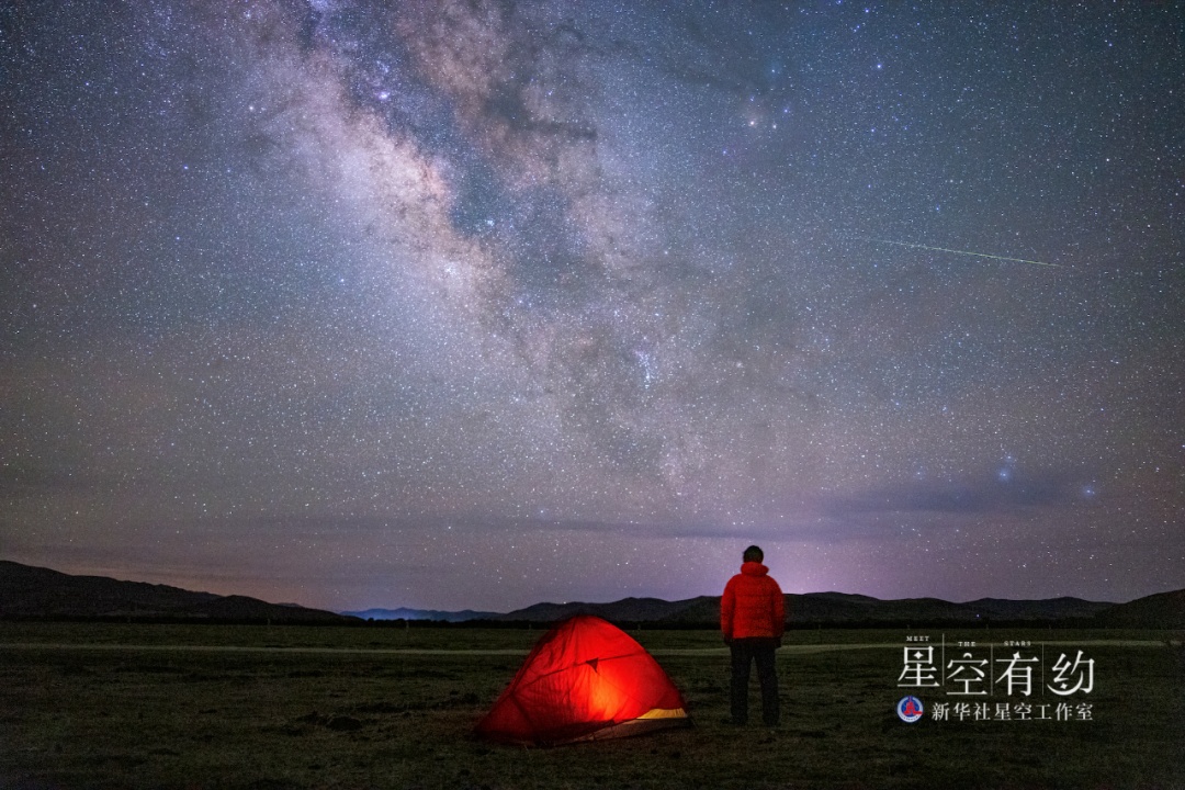 这是重庆市天文摄影爱好者戴建峰2022年5月7日在四川红原拍摄的宝瓶座η流星雨。(本人供图)