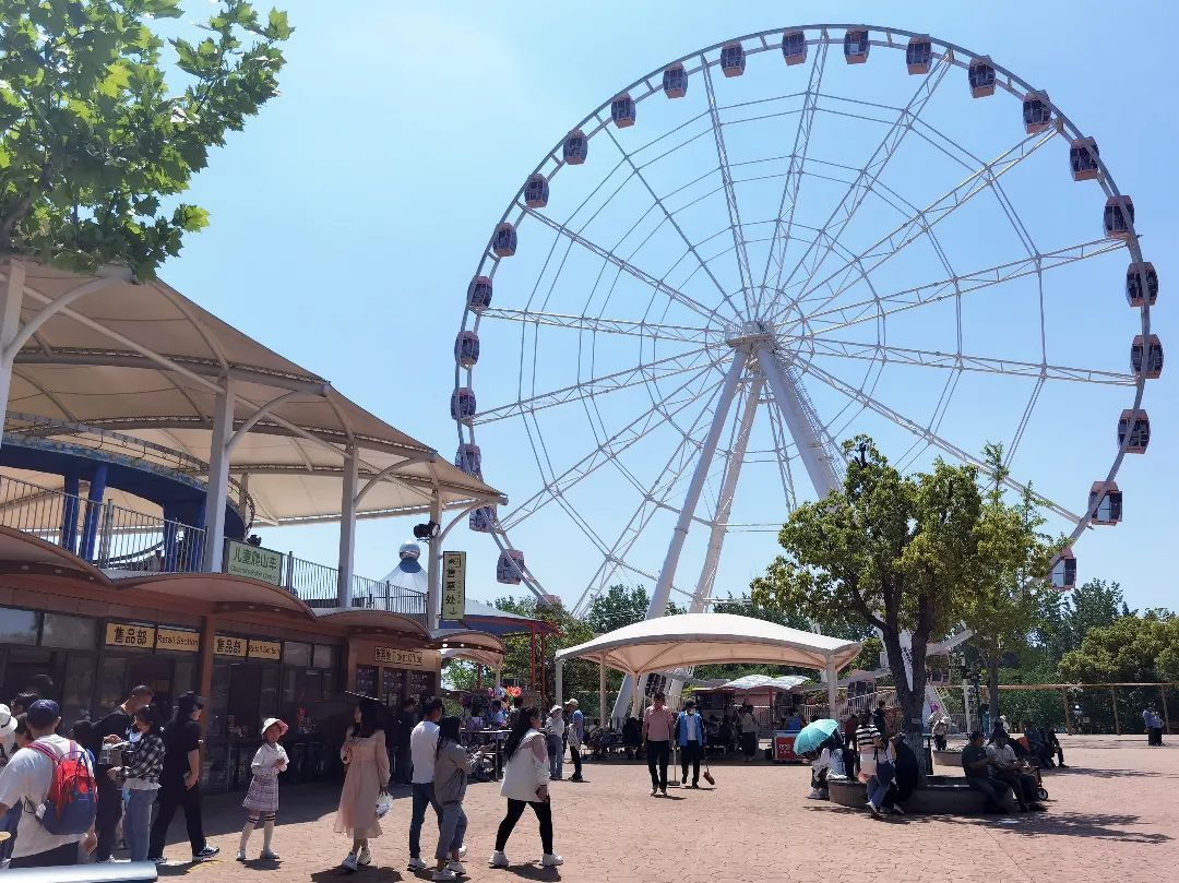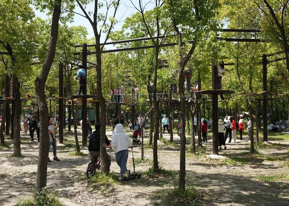 假日天气以晴好为主,许多游客走进顾村公园赏月季和木香花。在公园的草坪上,人们举家露营、搭起帐篷、席地而坐,有的在树荫下乘凉,有的沐浴在日光下晒着太阳,孩子们在四周追逐嬉戏,一派悠闲惬意。在不远处的烧烤区,人们聚集在烤炉边,用准备好的食材享受着自制烧烤的乐趣。此外,儿童乐园、恐龙世界、东方鸟世界等游玩区域也倍受孩子们欢迎。樱花粉的摩天轮一如既往地成为网红打卡点。