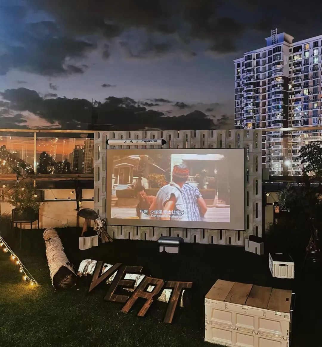 灯火阑珊,在月光下看一场露天电影,喝喝啤酒,谈谈心,给繁忙的一天画上舒适的句号。周末的晚上,还会有乐队现场演出。