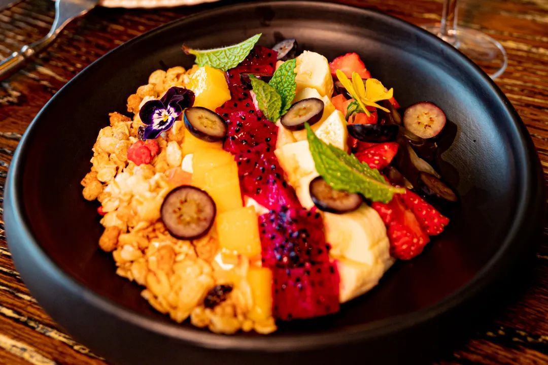 酸奶是餐厅自己发酵制作的,上面铺满了色彩缤纷的水果,吃之前将酸奶和水果搅拌,复合的口感十分美妙。