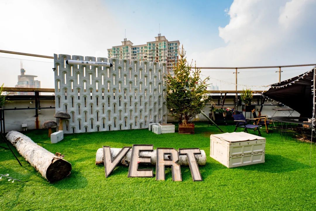 来餐厅不去露天平台,就像吃方便面不加调料包。整个平台铺着人工草坪,靠墙花坛中种着迷迭香、薄荷等可食香料和植物。