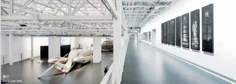 针对具有鲜明形体特征的老机库,充分利用大空间,将其设计成一个大空间的艺术展示厅。在尊重历史的原则下,尝试新老空间的融合,采用平屋顶的玻璃大厅与坡屋顶形成相互对比和呼应,再通过营造树木葱郁、明亮的开放式入口大厅,让新老建筑交相辉映。