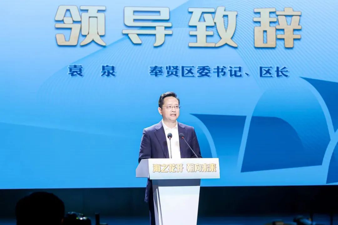 袁泉在致辞中代表奉贤区四套班子向长期以来关心支持奉贤经济社会发展的社会各界表示衷心的感谢,向为奉贤新城建设发展辛勤付出、默默耕耘的全体劳动者致以崇高的敬意。