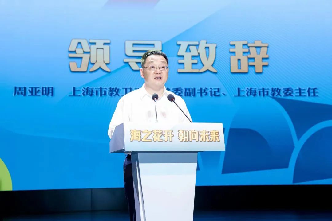 周亚明在致辞中代表上海市教卫工作党委、上海市教委对中心建成如期投入运行表示热烈的祝贺,他表示,在新城核心地段“大手笔”规划、高标准建设、高品位布局的“海之花”,必将成为培养奉贤区乃至全市青少年综合素养的重要基地。