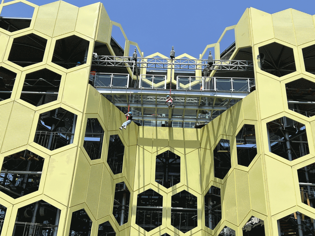 全新揭幕的超大体量无动力高空拓展综合体——“蜂巢塔”,成为一大亮点,吸引了众多运动爱好者前来打卡挑战。
