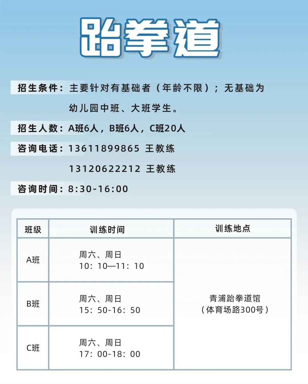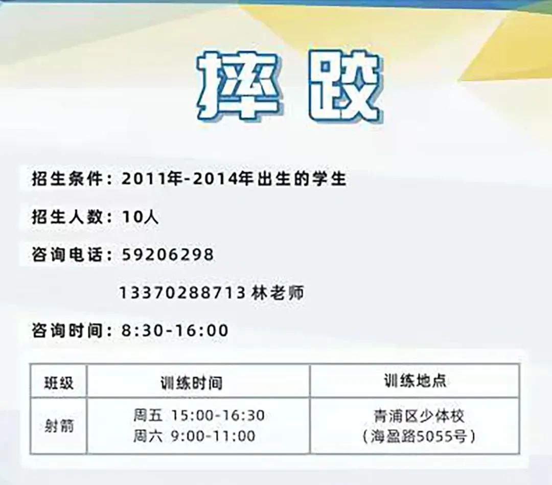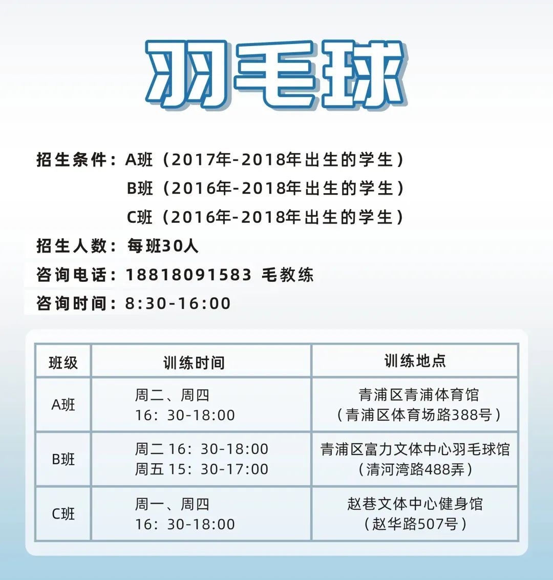 青浦区体育局拥有青浦区少体校和青浦区体育训练中心两家直属训练单位,现有田径场、游泳馆、游泳池、击剑训练馆、射箭训练馆、羽毛球训练场、摔跤馆、跆拳道馆、陆上训练房和综合力量训练房等体育场馆,训练面积超过10000平方米。