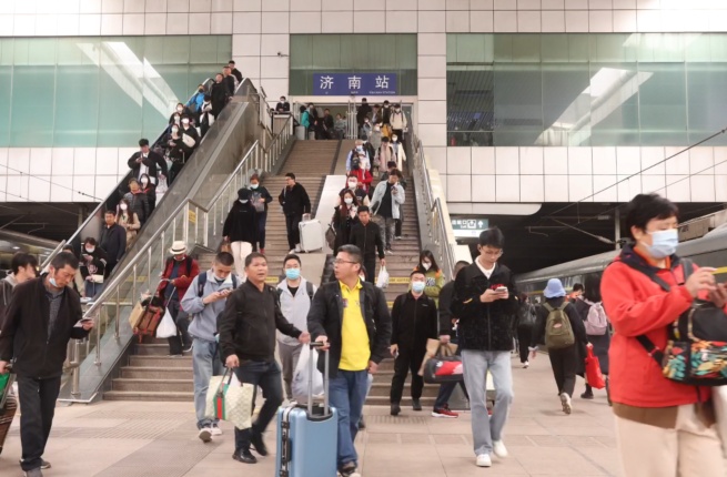 据国铁济南局客运部负责人介绍,今年五一假期铁路客流呈现“首尾高度集中,中间持续高位”的特点,是近年来铁路运力安排、旅客组织和服务质量的一次大考。五一假期,国铁济南局发送省内旅客502.4万人次,较2019年同期恢复率达140.5%,跨省旅客发送176.2万人次,较2019年同期恢复率达121.8%。4月29日、30日,5月2日、3日四天单日发送旅客均超90万人次。济南西、青岛北、青岛西、日照西、烟台、威海、临沂北、济宁北等50个车站单日旅客发送创历史新高,其中青岛北站4月29日旅客发送107794人次,成为山东省单日旅客发送最高的车站。假日期间,济南西站最高日发送旅客77561人次,三次刷新历史纪录;威海、淄博北、青岛西、胶州北、青岛机场、东营站均连续五天刷新历史纪录。