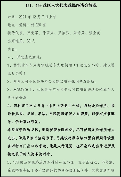 为尽快解决问题,爱博社区人大代表联络站的朱玲芳和其他人大代表、志愿者等会同街道职能部门、居委会通过走访、座谈等形式与社区居民深入沟通交流,一起协商解决办法,并及时反馈给街道。经过深入研究论证,2022年街道办事处将爱博四村口袋公园改造项目纳入实施日程。