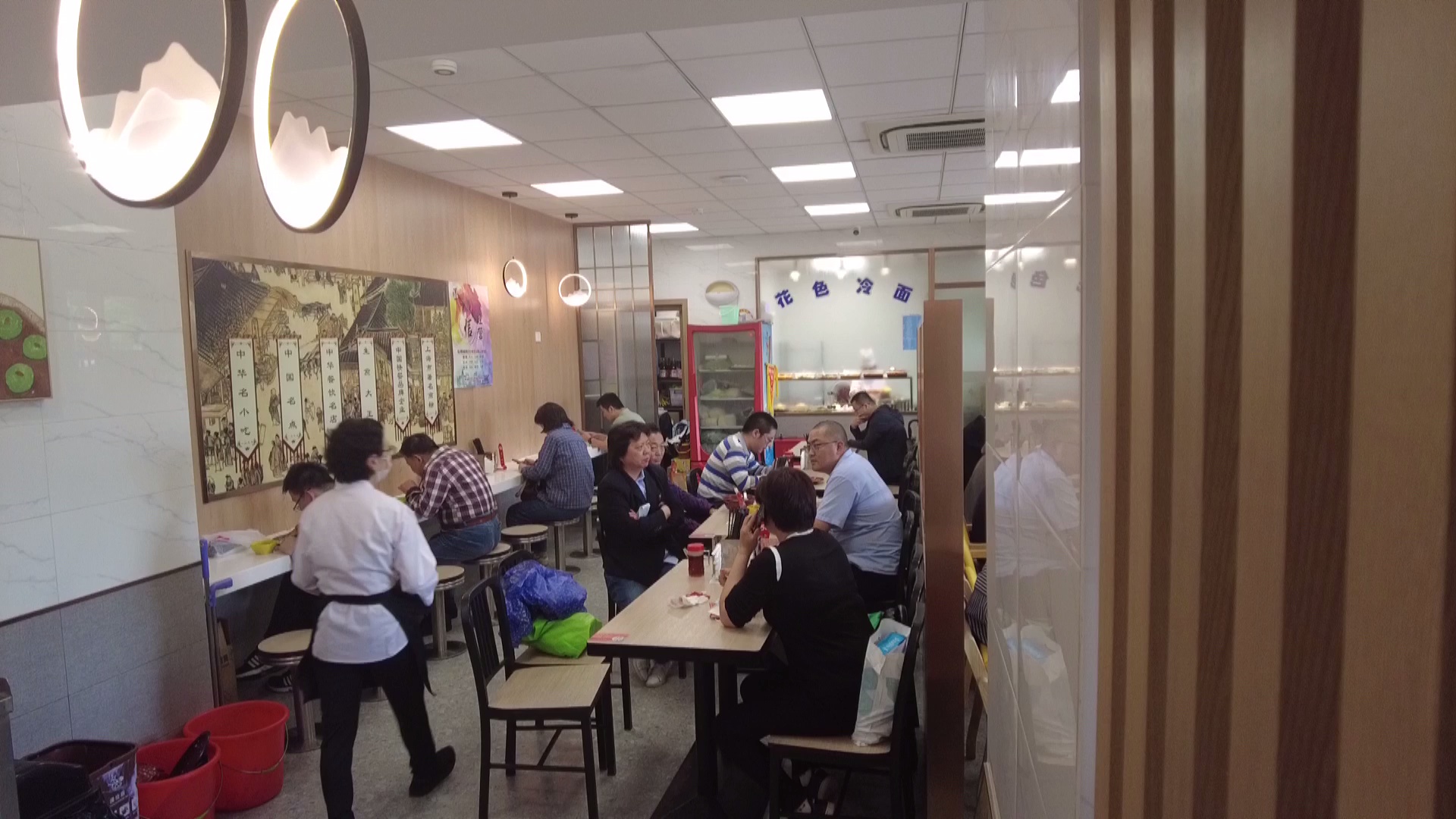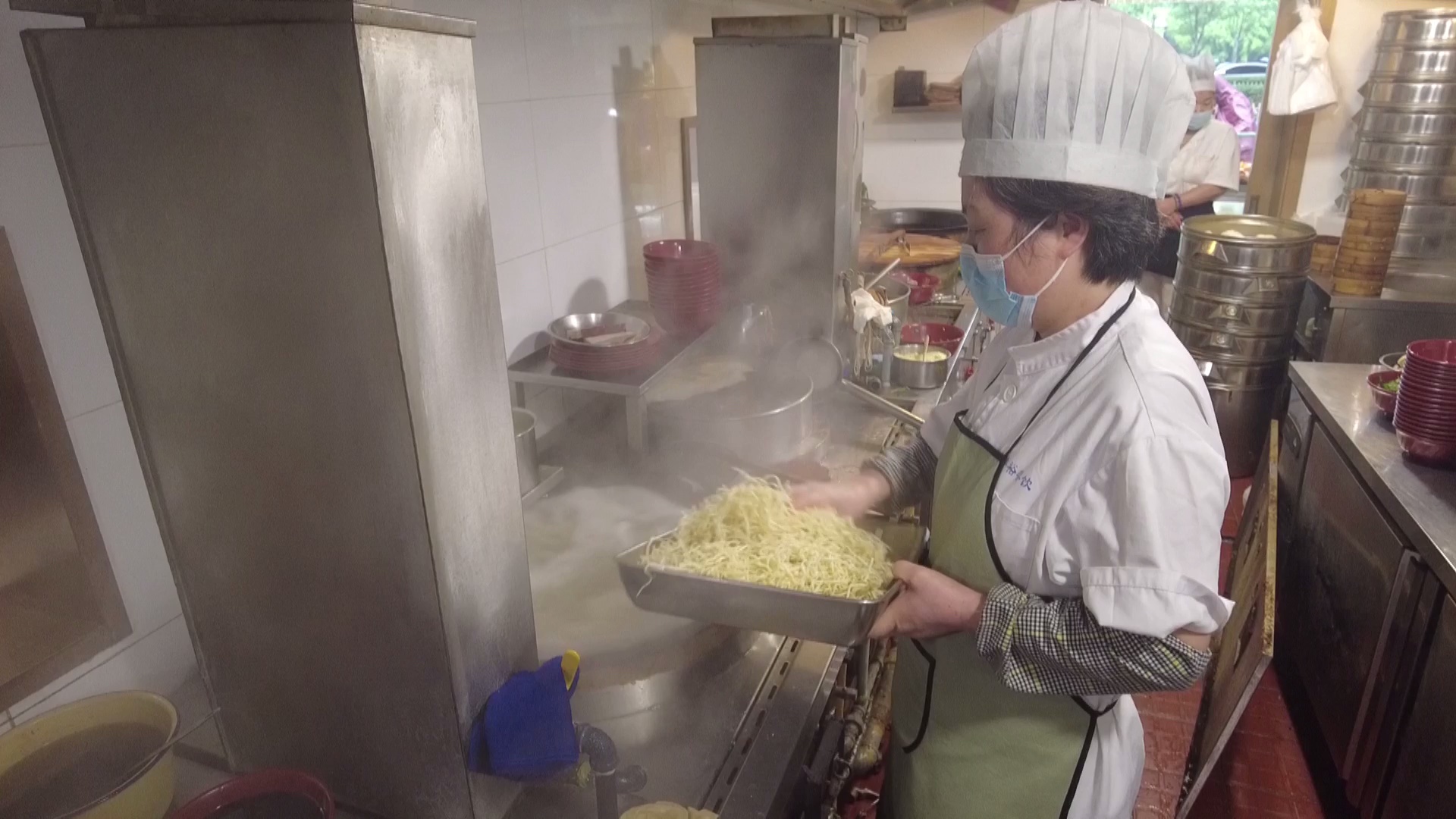 据介绍,丰裕餐饮的冷面采用传统工艺,先蒸后煮再冷拌。正在忙着加工冷面的老师傅告诉记者,冷面事先要蒸,蒸好以后放在锅子里下,下好以后在一边用电风扇吹,一边放油挑面。放的这个油要恰到好处,不要放多,多了腻嘴,少了也不好,面挑不开。丰裕餐饮鲁班路店店长毕秀秀告诉记者,今年的冷面没有涨价,清冷面依旧保持供应,4元一两。在浇头上,在保持20多个品种的基础上还要推出一些新品,像杏鲍菇牛柳冷面,酱爆牛蛙冷面等,都是在前期经过充分市场调研后决定的,以此满足不同顾客的需求。