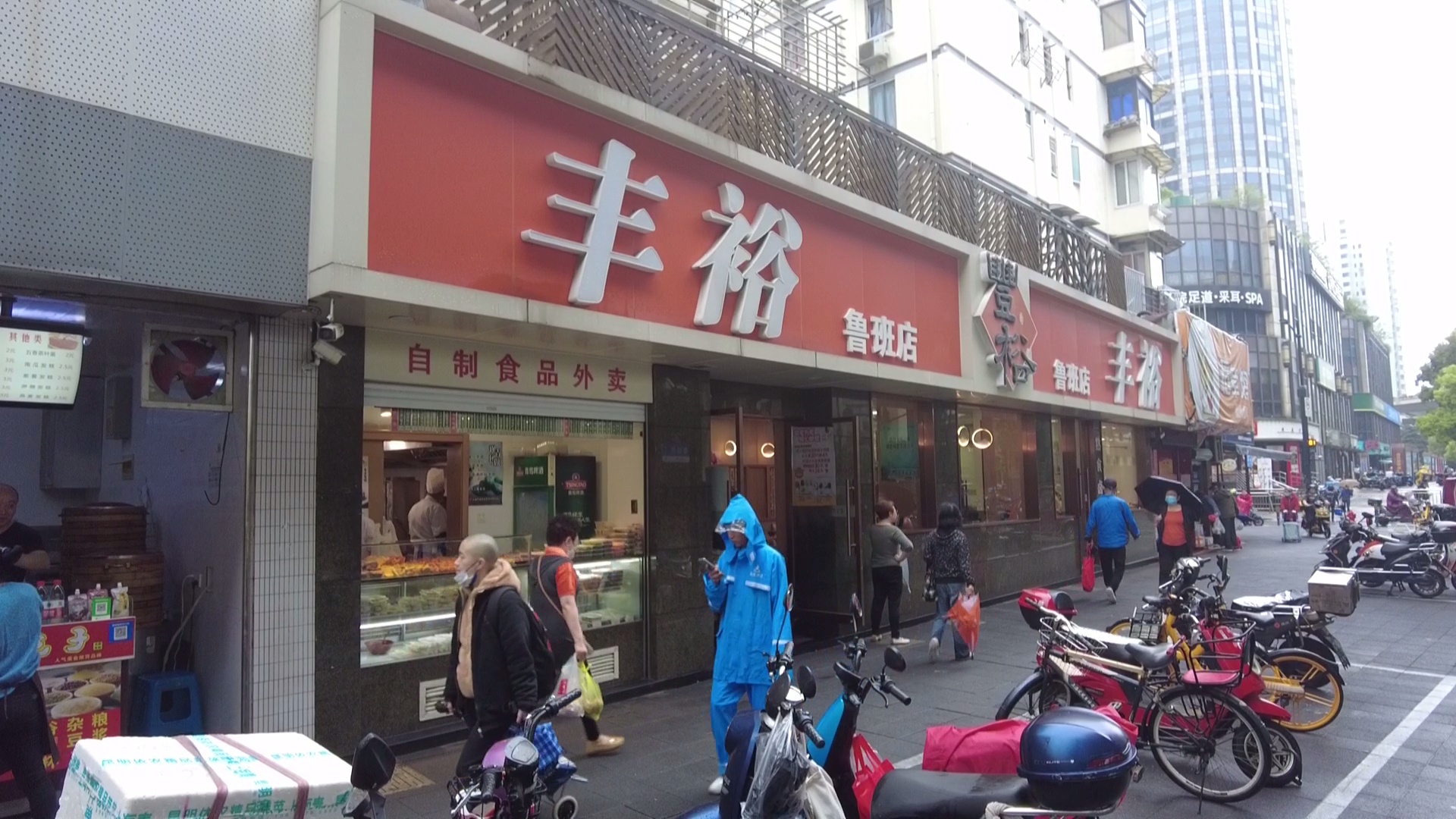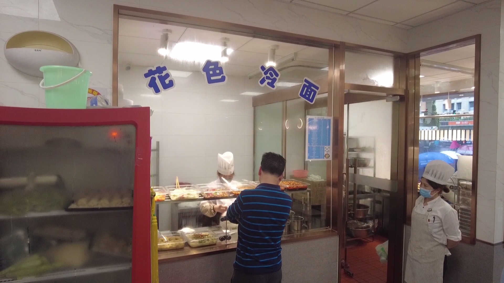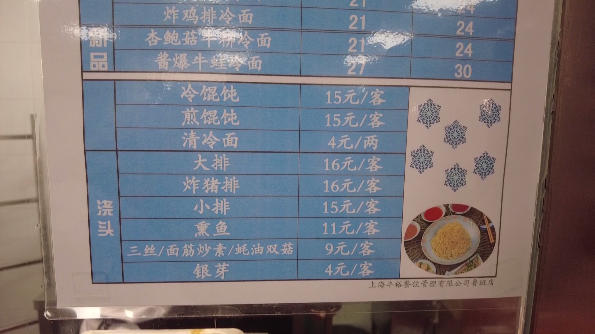 记者在鲁班路上的丰裕餐饮鲁班店看到,冷面冷馄饨专柜已经开始销售,辣肉、三丝、绿豆芽、番茄炒蛋、面筋等冷面浇头一字排开,格外吸引人。冷面装盆后,淋上生抽、米醋,再浇上花生酱,不用浇头,看着就眼馋。柜台窗口前,不时有市民前来堂吃或者拿外卖。