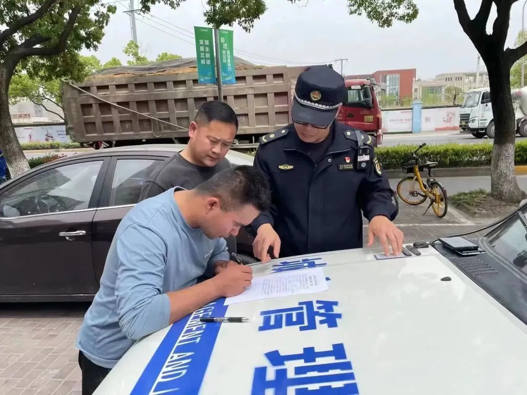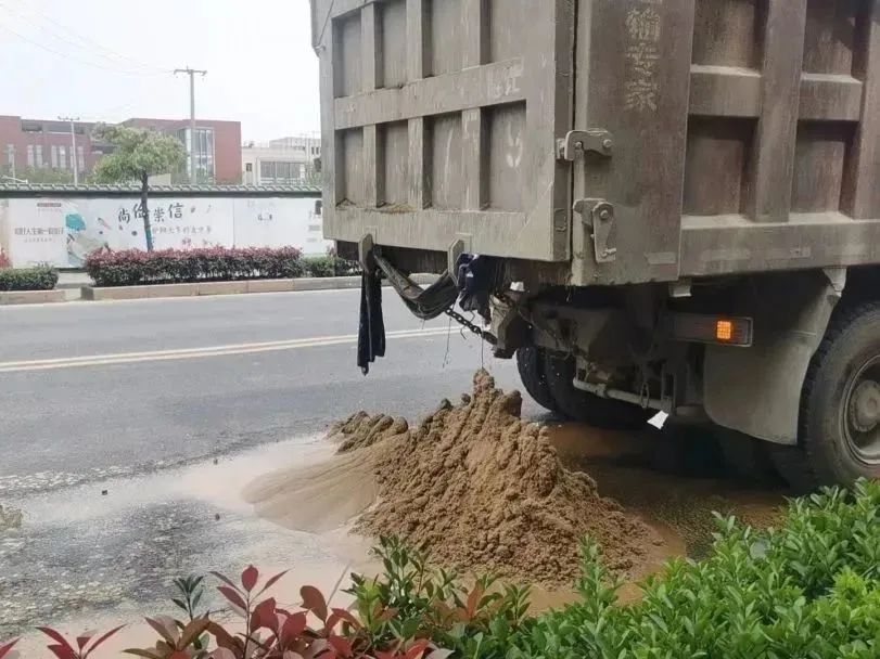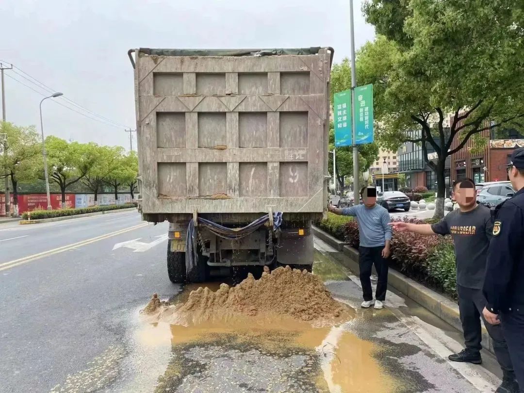 这一幕恰好被马桥镇综合行政执法队的执法队员巡查时发现。执法人员巡查至银春路华宁路路口时,发现一辆正在行驶的黄沙运输车有洒落的情况。执法人员当即示意驾驶员靠边停车,并向其了解具体情况,要求其出具相关证照。