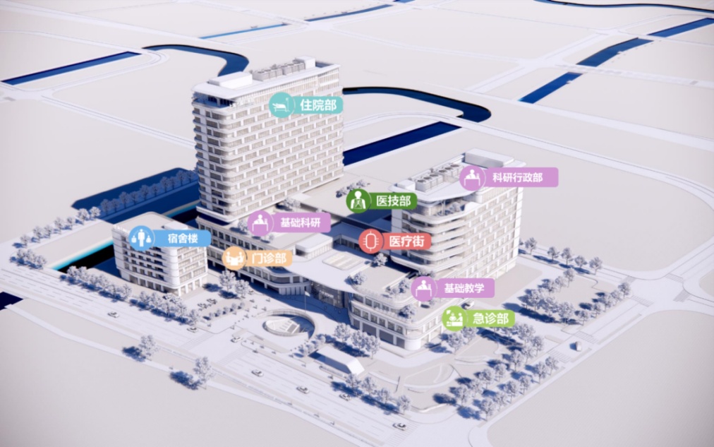主要功能设置包括门诊、急诊、病房、医技、科研等。