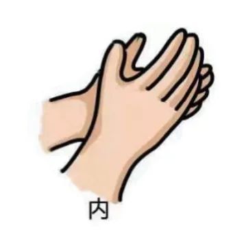 手心对手背沿指缝相互揉搓,双手交换进行。