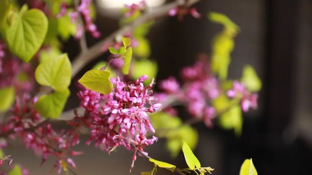 在春夏之交,紫荆花一条条绽放,花色艳而不妖,紫得恰到好处,紫荆花开得非常独特,是紧密排列的,一眼望去,枝条上满满的都是姹紫嫣红,就像一家人一样亲密相处,不离不弃。