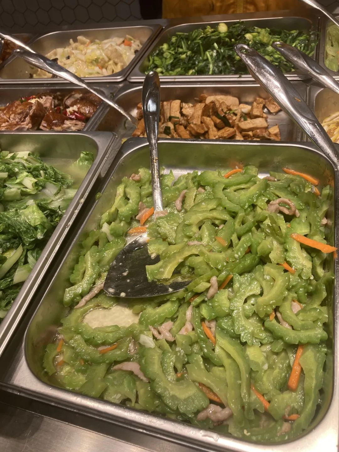 由于近来天气闷热,各类凉菜诸如三黄鸡、酸辣鸡爪、糟卤带鱼等很受欢迎。此外,一些刚推出的立夏时令新菜,也收获了许多顾客的好评。端着餐盘正在结账的王阿姨说,“今天看到有苦瓜炒肉丝太开心了,这两天的天气潮,肠胃胀气,就想吃点清火的菜式。”