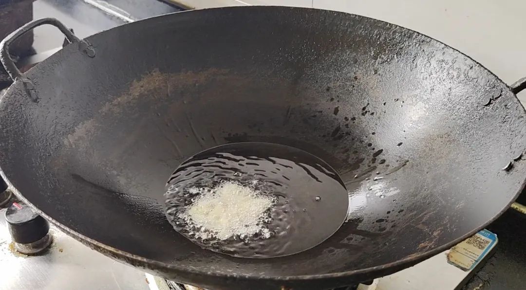 油温升高后下蒜末、葱末煸至微黄
