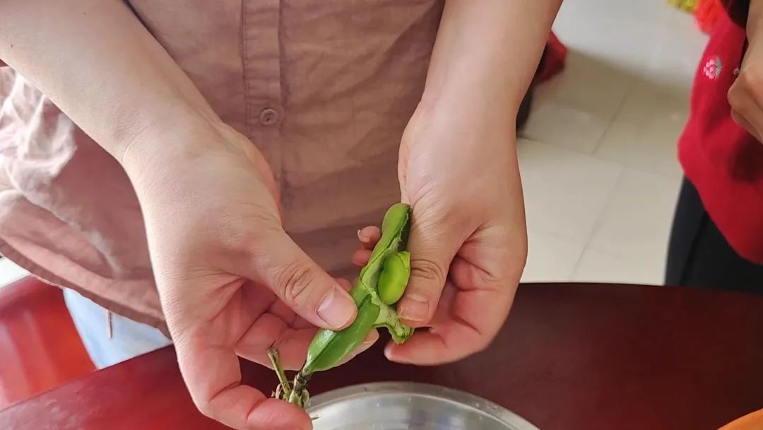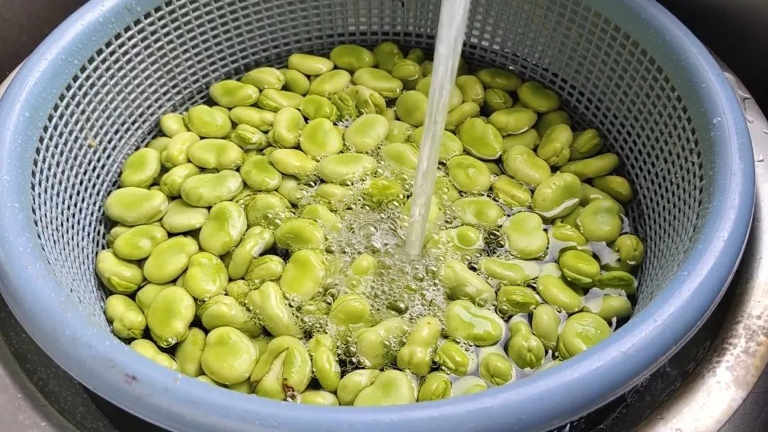 将新鲜采摘的蚕豆剥去外壳