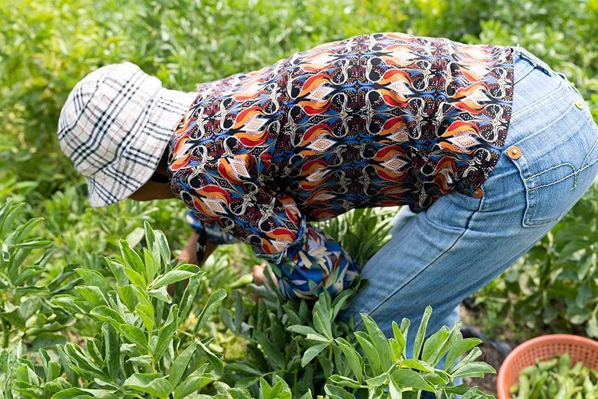 晴日暖风生麦气,绿荫幽草胜花时。近日,小编来到了香花桥街道泾阳村,跟着村民朱阿姨到她种植的蚕豆田采摘蚕豆。新鲜的蚕豆个个翠绿饱满,嫩时剥为蔬馔,软糯清甜。“蚕豆刚成熟,嫩蚕豆味道很鲜美,连豆壳都可以一起吃。”朱阿姨告诉小编,此时是吃蚕豆最好的时节。