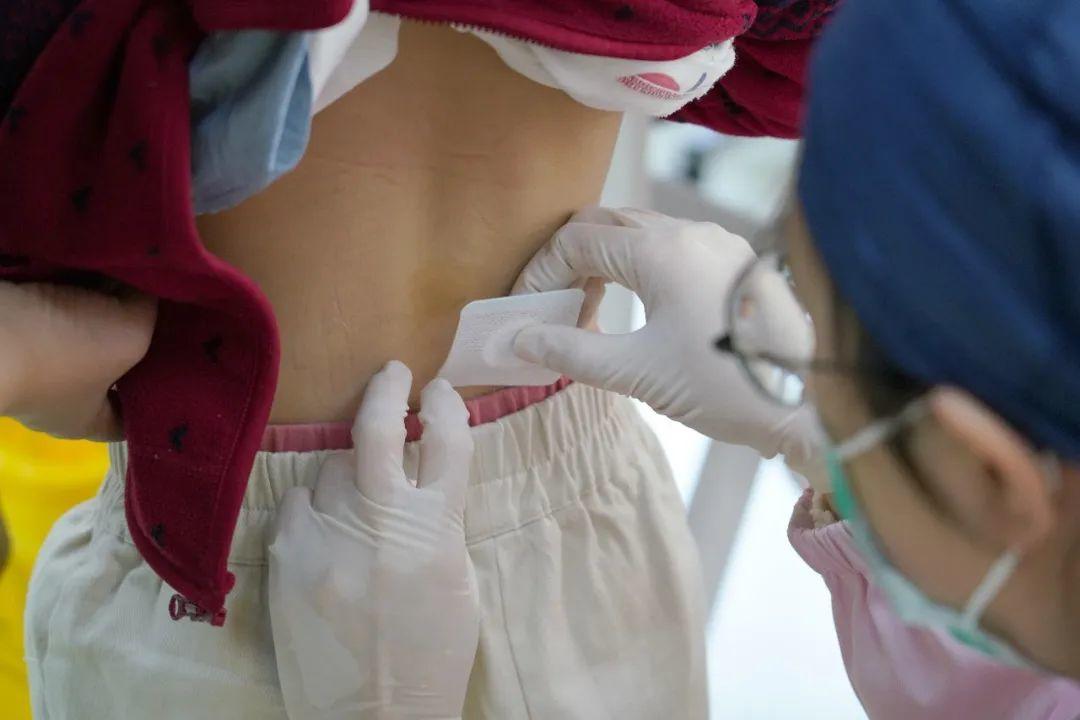 现场护士还手把手教家长给孩子贴“生长贴”的位置,以便回家自己操作,大片敷贴4小时、小片2小时,并特别叮嘱如果出现红肿、瘙痒等不适情况,一定要提前揭下敷贴。