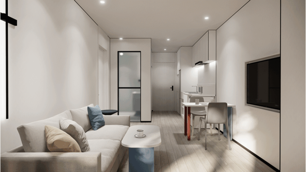 公寓主要面向外高桥企业年轻群体,将打造一系列有趣、复合的活力公共区域,包括健身角、联合客厅及办公区、共享厨房、自助洗衣房、宠物角等。
