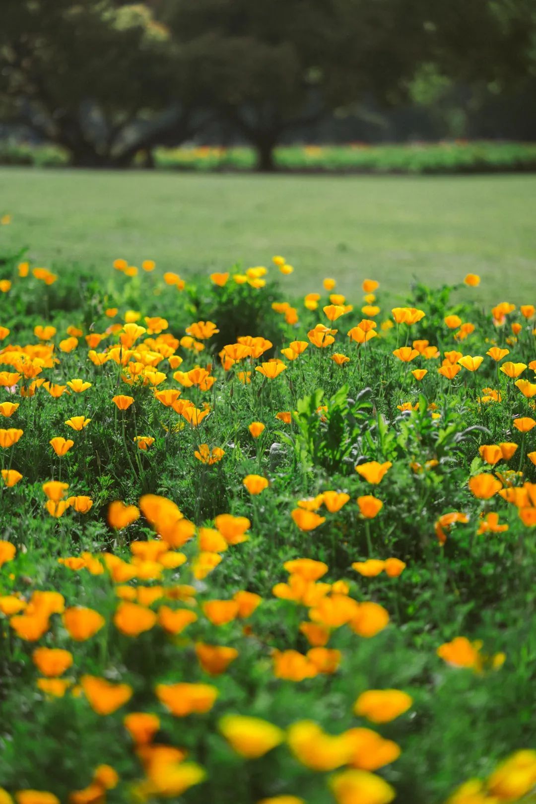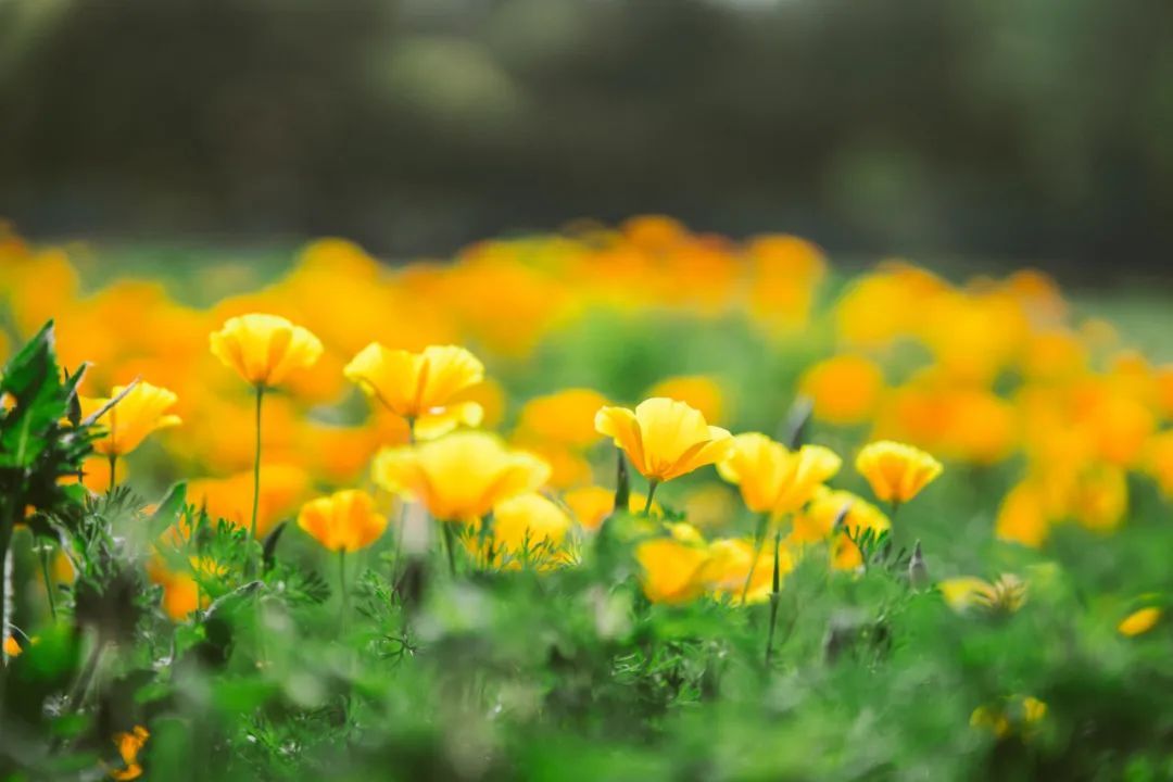 朵朵花菱草在春风中摇曳着,金黄色的花朵灿烂耀眼。放眼望去,金灿灿得耀眼夺目,在春日阳光下散发出蓬勃的朝气。