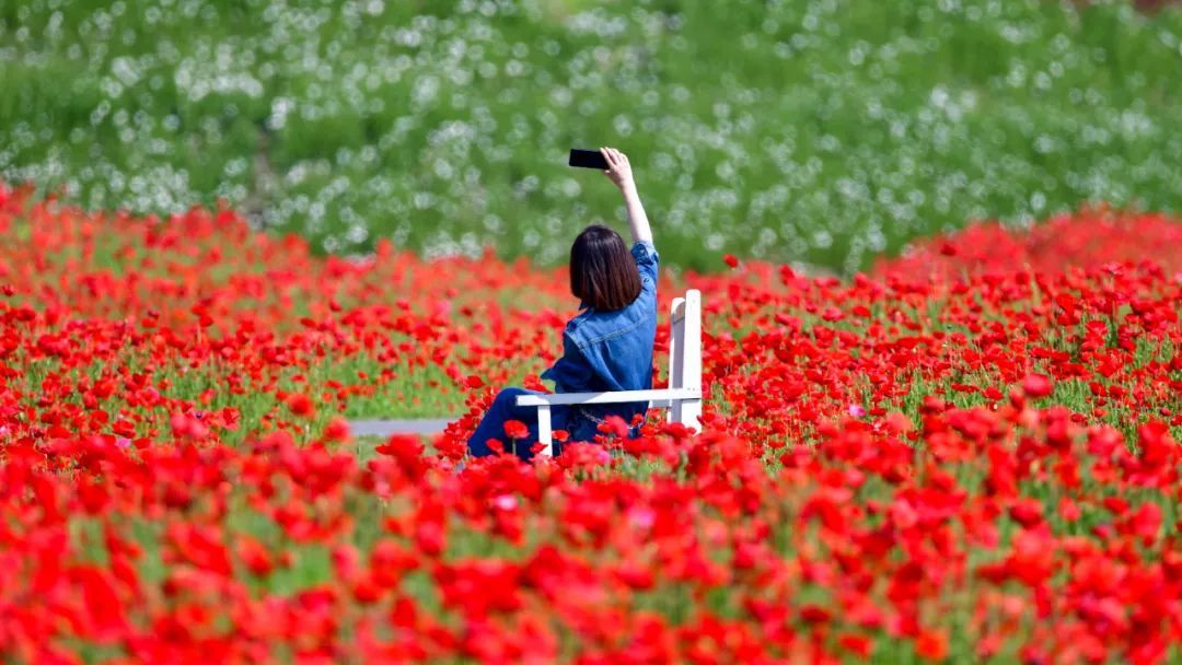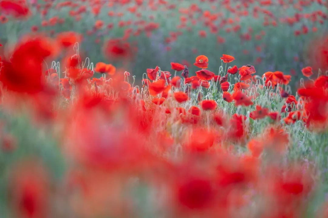 虞美人纤长的根茎随着风飘动,像极了美人在风中起舞,目之所及,皆是美好。