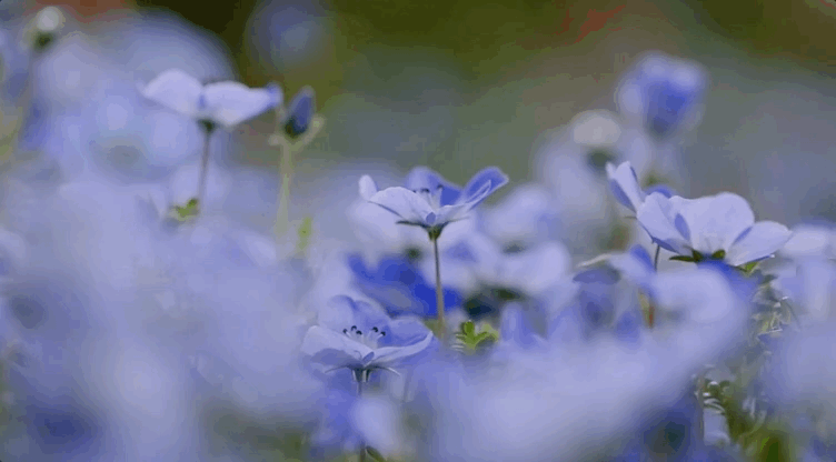 成片的喜林草在此汇聚成蓝色的海洋,风吹浪起,喜林草在其间随风摇曳。