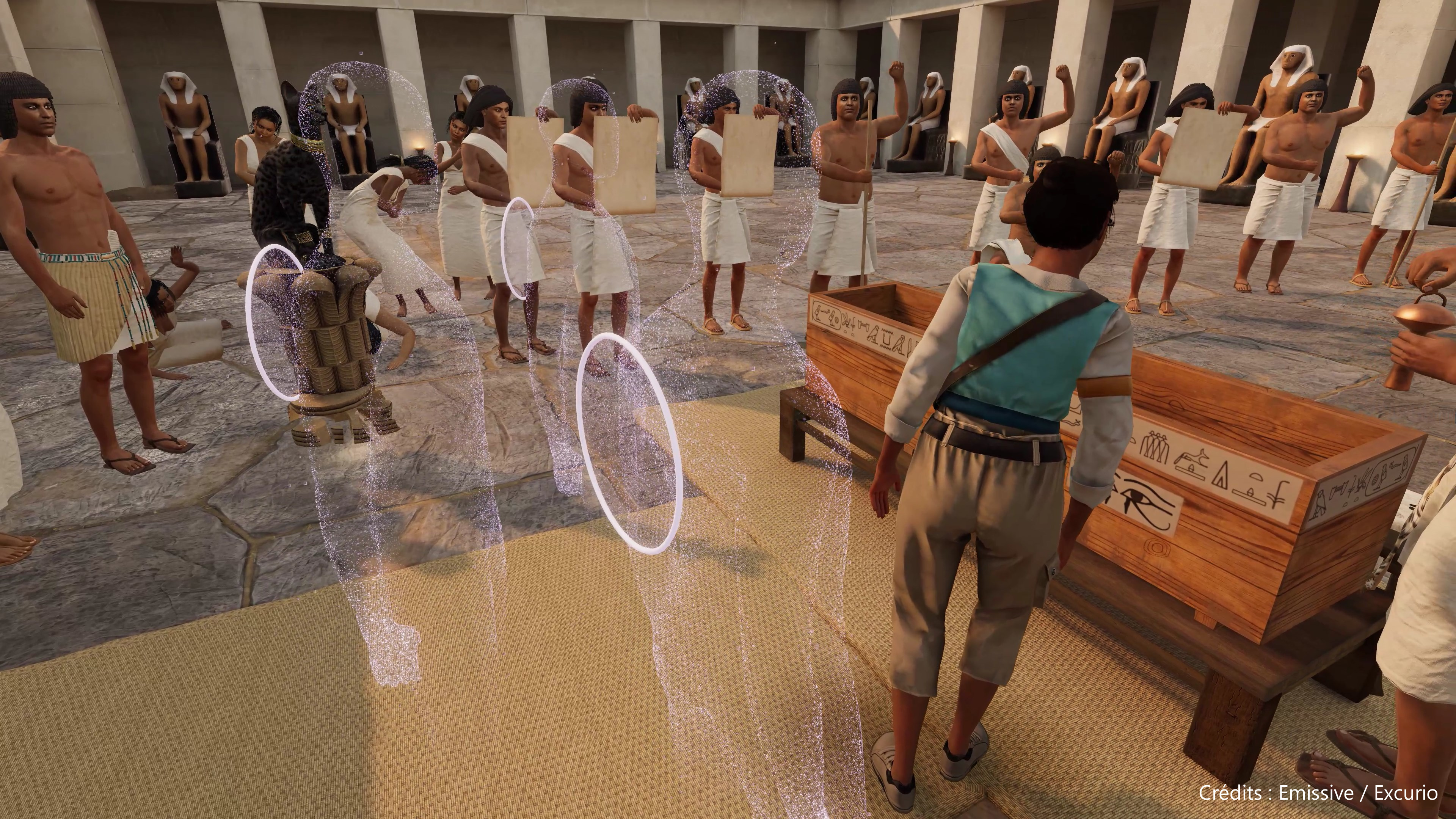 参观者穿戴上专属背包及VR 头显设备后,能变成古埃及村落里的一员,感受4500年前的日常生活;也能深入金字塔中心了解其内部构造和历史脉络,探索从未向公众开放的神秘区域;还能登顶俯瞰吉萨高原全景、在尼罗河上乘坐太阳船航行,又或者参加一场古埃及的祭祀仪式...... 古埃及文明的神秘面纱在现代科技技术的加持下,变得触手可及。