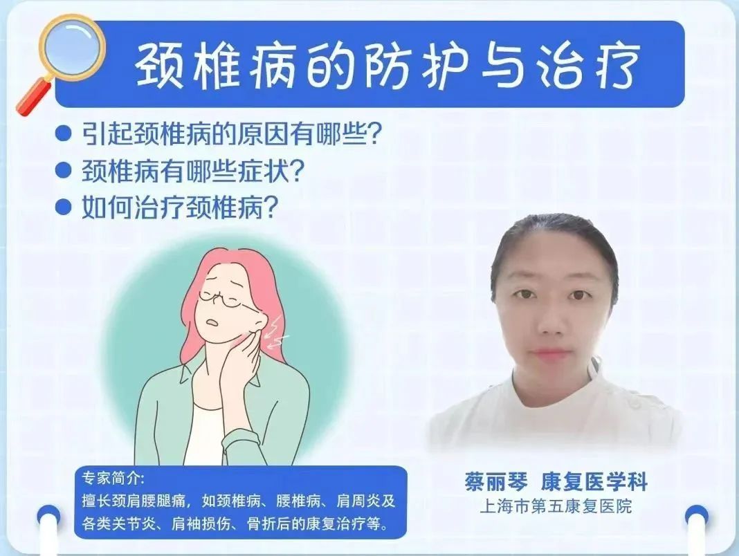 “10个上班族,9个颈椎痛”,这句话贴切地概括了当代年轻人的颈椎情况,高强度的工作状态,让很多人难逃颈椎病的“魔爪”。本期《健康智慧屋》直播间,邀请了上海市第五康复医院康复医学科医生蔡丽琴,为大家科普颈椎病的“防”与“治”。
