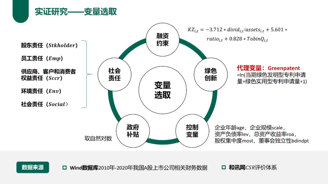 该项目以2010年一2020年我国A股上市公司为研究对象,基于和讯网企业社会责任评价得分与上市公司绿色专利数据,并结合融资约束和政府补贴,研究了企业履行社会责任对其绿色创新的影响及其中介机制。