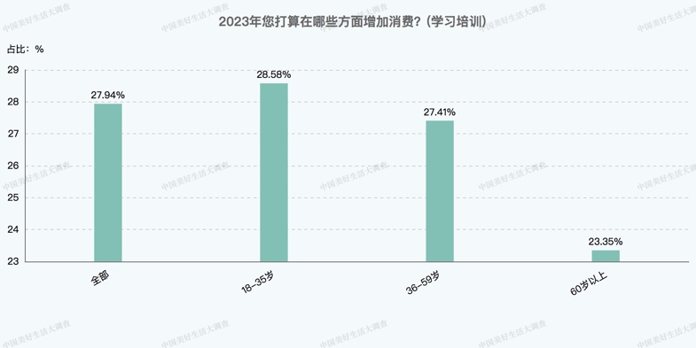 大数据显示,还有28.58%的年轻人今年准备在学习培训上增加消费,这一占比也高于其他年龄段人群。